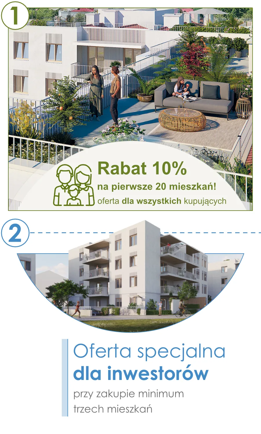 Przemyślane układy 2-5 pokojowych mieszkań z ogródkami, balkonami lub tarasami na dachu